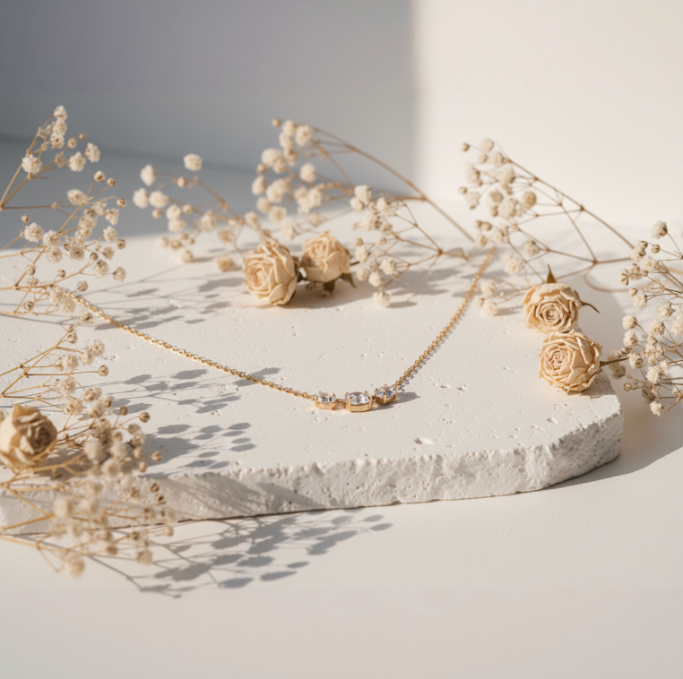 Delicate and refined, this necklace features three natural genuine Herkimer diamonds set on an 18” Sterling Silver with 14K gold overlay. A minimalist design with subtle sparkle-perfect for bridal, layering, or everyday elegance.