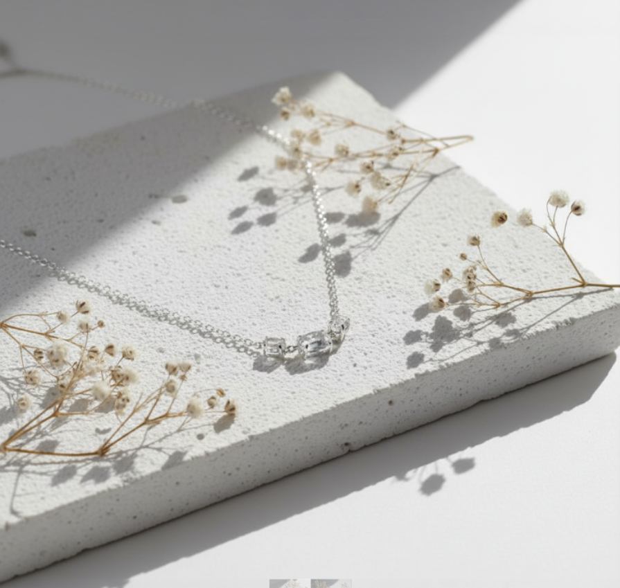 3 Stone Silver Necklace