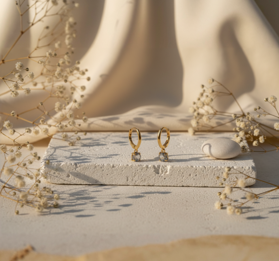 Lightweight and effortlessly wearable, they transition beautifully from everyday to evening, adding a touch of natural sparkle that complements any style.