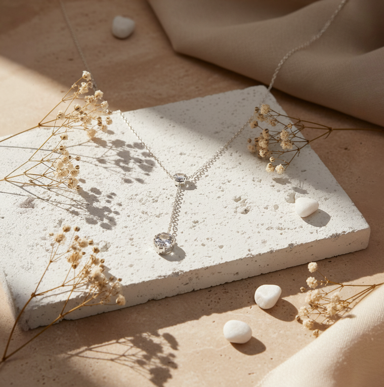This lariat-style necklace features a Herkimer diamond tabby pendant suspended 2.5” from the center stone and a 3rd Herkimer stone that drapes gracefully down the back-approximately 4 inches from the heart clasp for a delicate sparkle from every angle. Each stone is raw and faceted by nature, catching light with effortless sparkle. The drop design adds subtle movement and perfect for layering or wearing as a statement on its own.